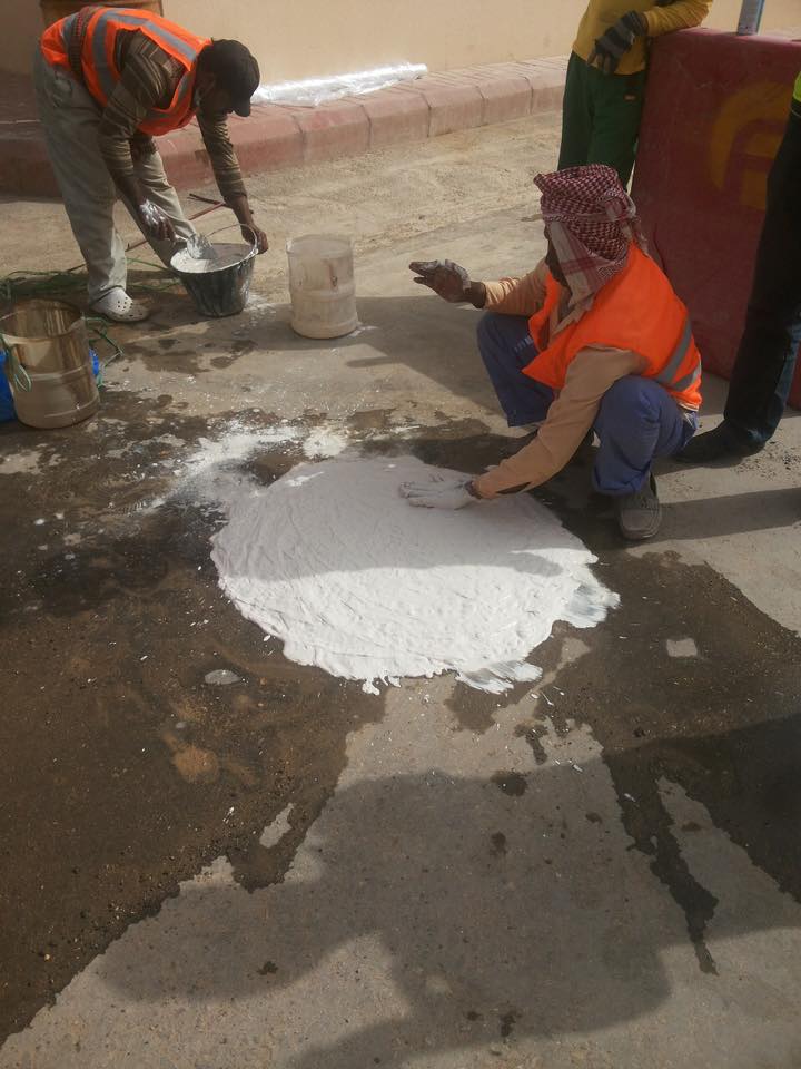 - تغطية المشمع بالجبس مع وضع مهندس الاشراف علامات مميزة على الجبس .